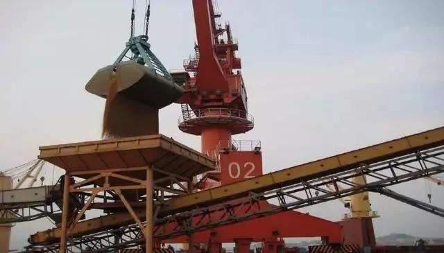 3、加工工廠一般建在碼頭附近,巨大的抓斗將大豆直接轉移到傳送帶,7萬噸的一船大豆也就2、3天時間卸貨完畢。