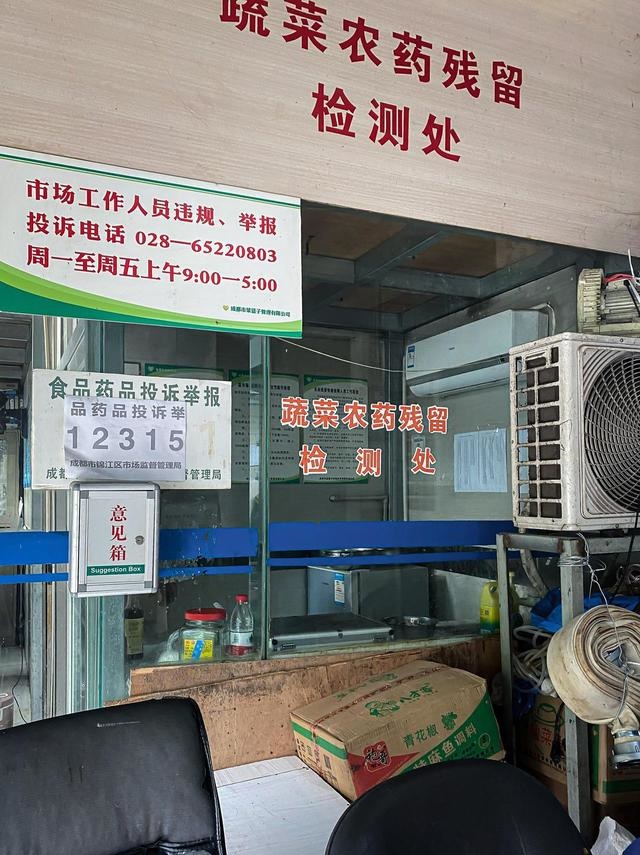3月16日,紅星新聞記者來到錦江區(qū)安居天涯農(nóng)貿(mào)市場,在市場內(nèi)看到,有一處寫著“蔬菜農(nóng)藥殘留檢測處”的窗口,但窗口內(nèi)并無工作人員。等了近半個小時后,一名自稱是市場工作人員的女士出現(xiàn),告訴記者此處不能進行農(nóng)殘檢測。不能檢測農(nóng)殘,那此窗口為何設立?該工作人員表示:“這個檢測站不針對市民,是便于第三方來市場定期抽檢時使用。”