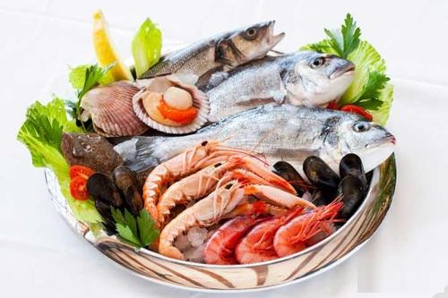 水產(chǎn)類食物,包含魚、蝦、貝類等等。