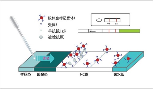 以納米金為免疫標(biāo)記物的檢測(cè)技術(shù)作為現(xiàn)代四大標(biāo)記技術(shù)之一的納米金標(biāo)記技術(shù)(nanogold labelling techique),實(shí)質(zhì)上是蛋白質(zhì)等高分子被吸附到納米金顆粒表面的包被過程。1989年,Spielberg等發(fā)展了以金為標(biāo)記物用于檢測(cè)艾滋病病毒抗體的滲濾試驗(yàn),確立了斑點(diǎn)金免疫滲濾試驗(yàn)的基本技術(shù),膠體金免疫層析(GICA)技術(shù)是20世紀(jì)90年代初建立的一種簡易快速穩(wěn)定的免疫學(xué)檢測(cè)技術(shù)。