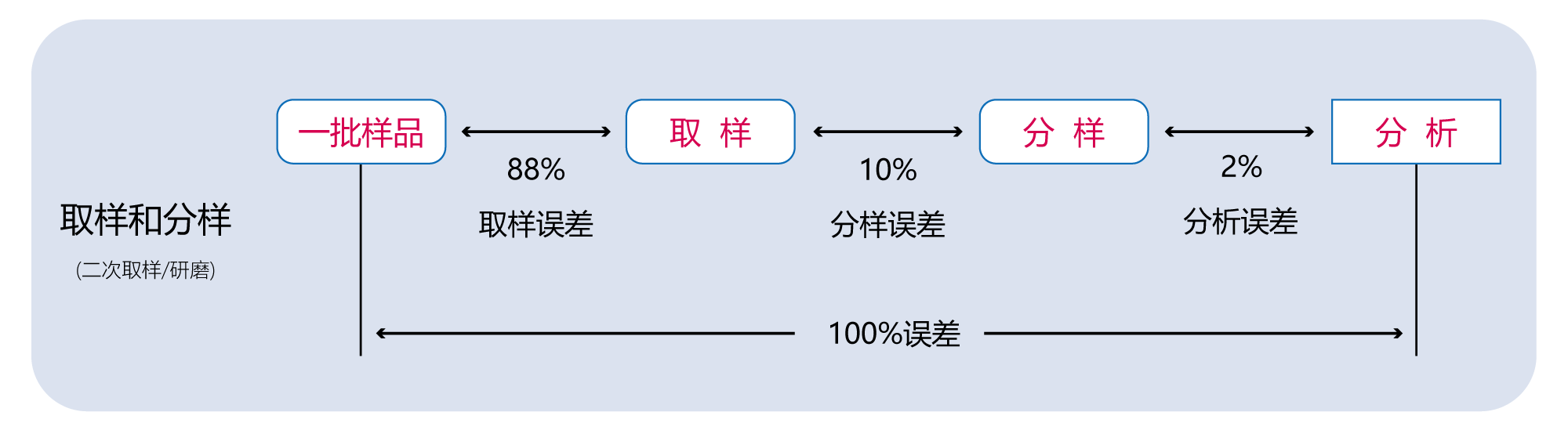 真菌毒素的檢測誤差一直是糧油、飼料等領(lǐng)域令檢驗(yàn)化驗(yàn)人員非常頭疼的問題,有時甚至?xí)_(dá)到百分之幾百的偏差,誤差的來源和影響因素非常之多,如檢測產(chǎn)品本身、操作流程和細(xì)節(jié)掌握程度、實(shí)驗(yàn)環(huán)境和條件、不同種類樣品的基質(zhì)效應(yīng)等,其中影響最大的一個因素--抽樣。