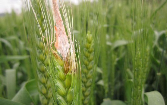 小麥赤霉病別名麥穗枯、爛麥頭、紅麥頭,是小麥多發(fā)病害之一。小麥赤霉病在全世界各地小麥作物上都有發(fā)生。赤霉病從小麥幼苗期就可發(fā)病,引起種腐、苗腐、莖基腐和穗腐,其中以穗腐最為普遍和嚴(yán)重。穗腐是小麥揚(yáng)花期病菌入侵引起的,起初在小麥穗上出現(xiàn)水漬樣的病斑,漸擴(kuò)大至整個(gè)小穗,導(dǎo)致小穗枯黃。濕度大時(shí),病斑處產(chǎn)生粉紅色膠狀霉層。后期其上產(chǎn)生密集的藍(lán)黑色小顆粒(病菌子囊殼)。用手觸摸,有突起感覺,不能抹去,籽粒干癟并伴有白色至粉紅色霉。此病流行時(shí),田間可見明顯的紅色麥穗。