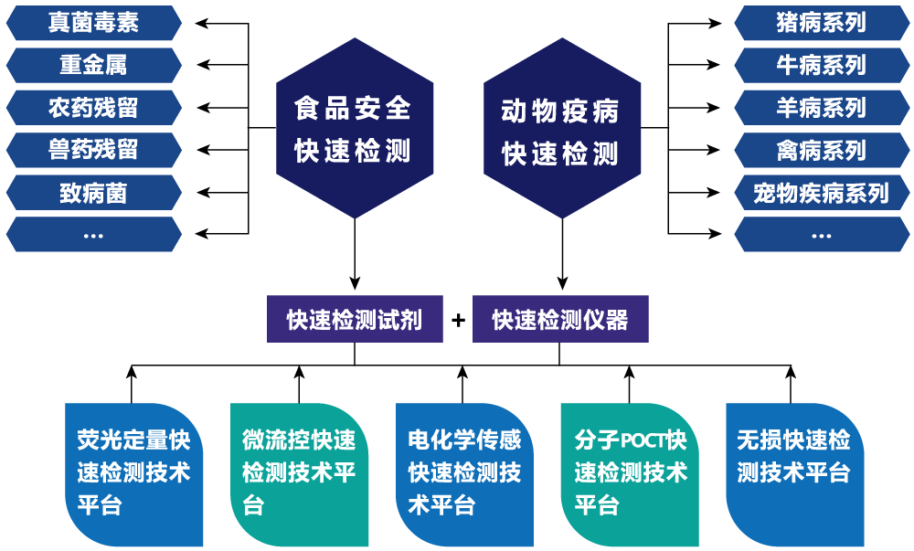 研究院將面向國(guó)家食品安全、動(dòng)物疫病及環(huán)境監(jiān)測(cè)等領(lǐng)域的重大戰(zhàn)略需求、面向世界科技前沿、面向經(jīng)濟(jì)建設(shè)主戰(zhàn)場(chǎng),為健康中國(guó)提供科技支撐。聚焦于食品安全、動(dòng)物疫病與環(huán)境領(lǐng)域快速檢測(cè)關(guān)鍵技術(shù)、裝備與試劑的研發(fā)和產(chǎn)業(yè)化轉(zhuǎn)化,包括時(shí)間分辨熒光及量子點(diǎn)免疫層析快速檢測(cè)技術(shù)、微流控快速檢測(cè)技術(shù)、電化學(xué)傳感快速檢測(cè)技術(shù)、分子POCT快速檢測(cè)技術(shù)及無(wú)損快速檢測(cè)技術(shù)等前沿技術(shù),突出以快速、簡(jiǎn)便、準(zhǔn)確、現(xiàn)場(chǎng)為特色。研究院同時(shí)也將充分發(fā)揮技術(shù)整合和轉(zhuǎn)化平臺(tái)的功能,積極引進(jìn)國(guó)內(nèi)外各大高校、科研院所等已有的科研成果(從0到1部分),結(jié)合市場(chǎng)需求,進(jìn)行二次開發(fā)及跨界應(yīng)用,實(shí)現(xiàn)1到100的跨越。